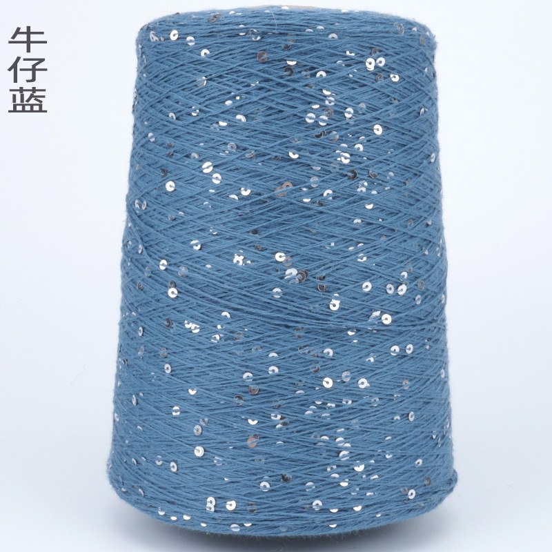 Пряжа Хлопок с пайетками цвет 84 джинсовый синий (Китай)